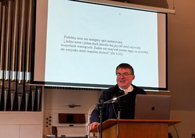 W trakcie analizy prelegent wyróżnił także cztery filary życia pierwszego Kościoła, nawiązując do opisu z Dziejów Apostolskich (Dz 2,42). Zaliczył do nich: naukę Apostołów, wspólnotę (braterską jedność), łamanie chleba (Eucharystię) oraz modlitwę . Te elementy duchowej struktury sprawiły, że pierwsi chrześcijanie tworzyli autentyczną wspólnotę wiary. Dzięki temu słuchacze mogli lepiej zrozumieć, jak sama struktura tekstu biblijnego pomaga odkryć przesłanie – kolejność i akcenty w narracji Dziejów ukazują, co było najważniejsze w życiu rodzącego się Kościoła.