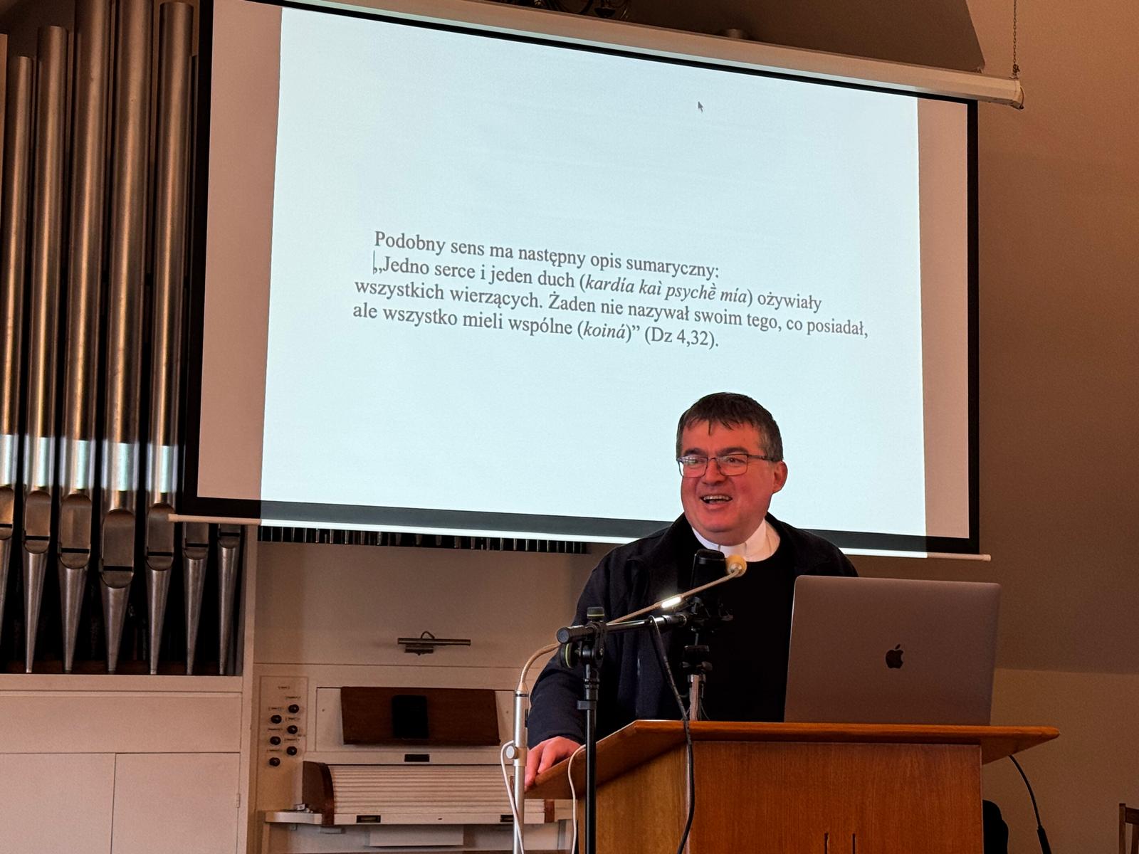 Wykład koncentrował się na ukazaniu pierwotnej struktury Kościoła opisanej na kartach Dziejów Apostolskich. Prelegent, omawiając rozdział 4. Dziejów, przypomniał sceny “Apostołowie Piotr i Jan przed Sanhedrynem” oraz “Modlitwa Kościoła wśród prześladowań”, aby zilustrować dynamikę rodzącej się wspólnoty chrześcijańskiej . Analizując te fragmenty, ks. Malina zwrócił uwagę na kluczowe cechy pierwszej wspólnoty uczniów Chrystusa. Szczególnie podkreślił obraz jedności i wspólnoty dóbr wśród wierzących, opisany przez św. Łukasza następująco: