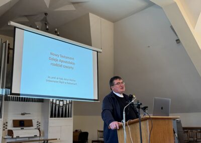 W sobotę 22 lutego 2025 r. odbyło się kolejne spotkanie biblijne z cyklu Sobót Biblijnych diecezji bielsko-żywieckiej, poświęcone strukturze i przesłaniu księgi Dziejów Apostolskich. Prelekcję wygłosił ks. prof. dr hab. Artur Malina, kierownik Katedry Biblijnej Starego i Nowego Testamentu Uniwersytetu Śląskiego w Katowicach – ceniony biblista i kapłan . Wydarzenie zgromadziło licznych wiernych pragnących lepiej poznać Pismo Święte i odkryć głębsze przesłanie księgi Dziejów.